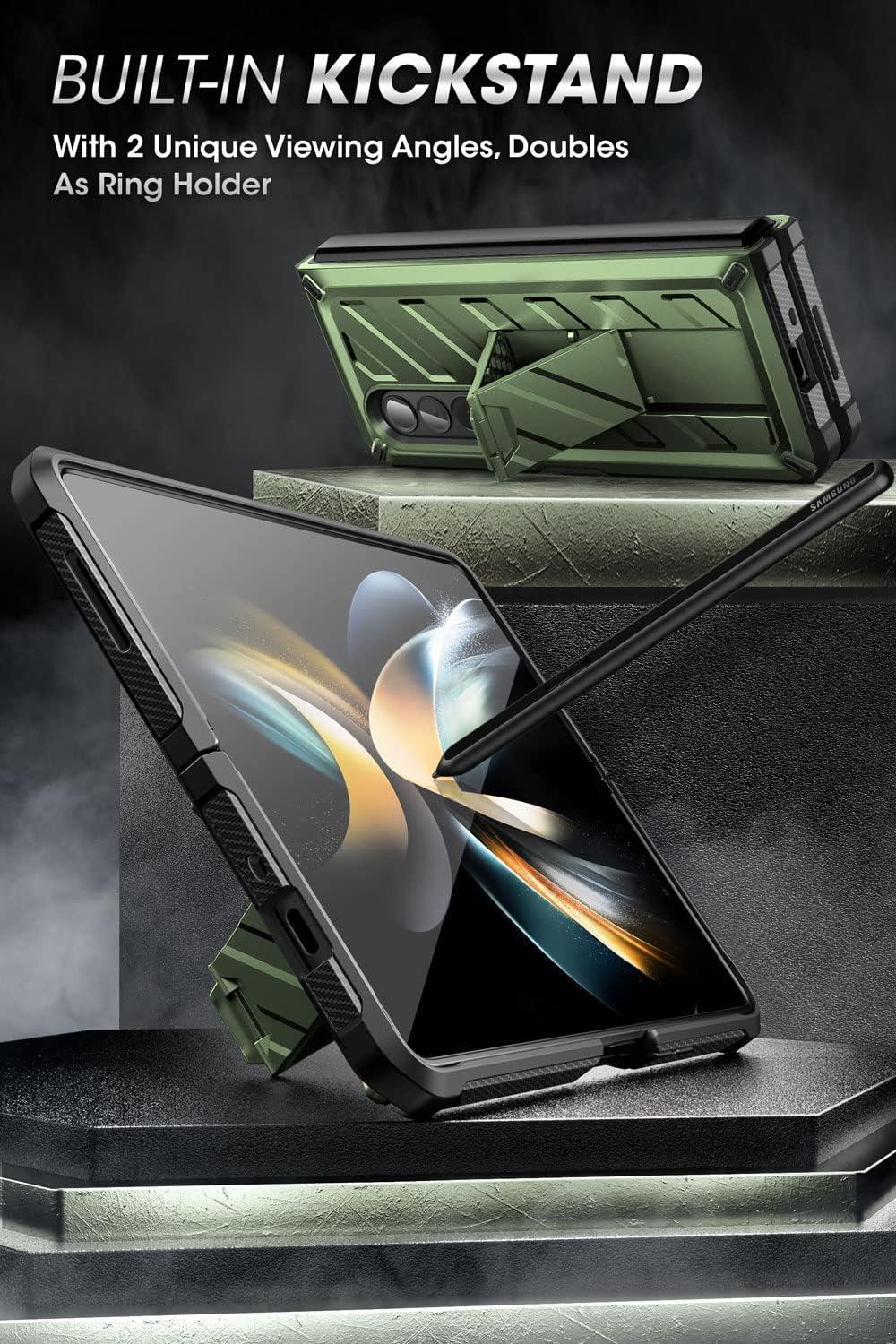 SUPCASE for Galaxy Z Fold 4 Case with Stand & Belt-Clip (Unicorn Beetle), [Built-in Screen Protector] [Military-Grade Drop Protection] Heavy Duty Protective Phone Case for Samsung Fold 4, Black(Green)